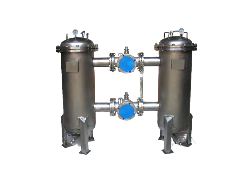 雙聯(lián)過濾器,適用于公稱壓力為0.6MPa的系統(tǒng)中。分別由二組過濾筒和二個三通換向閥組成,工作時一筒工作,一筒可進行清洗備用,可實現(xiàn)不停機切換過濾筒,達到不間斷工作的目的。